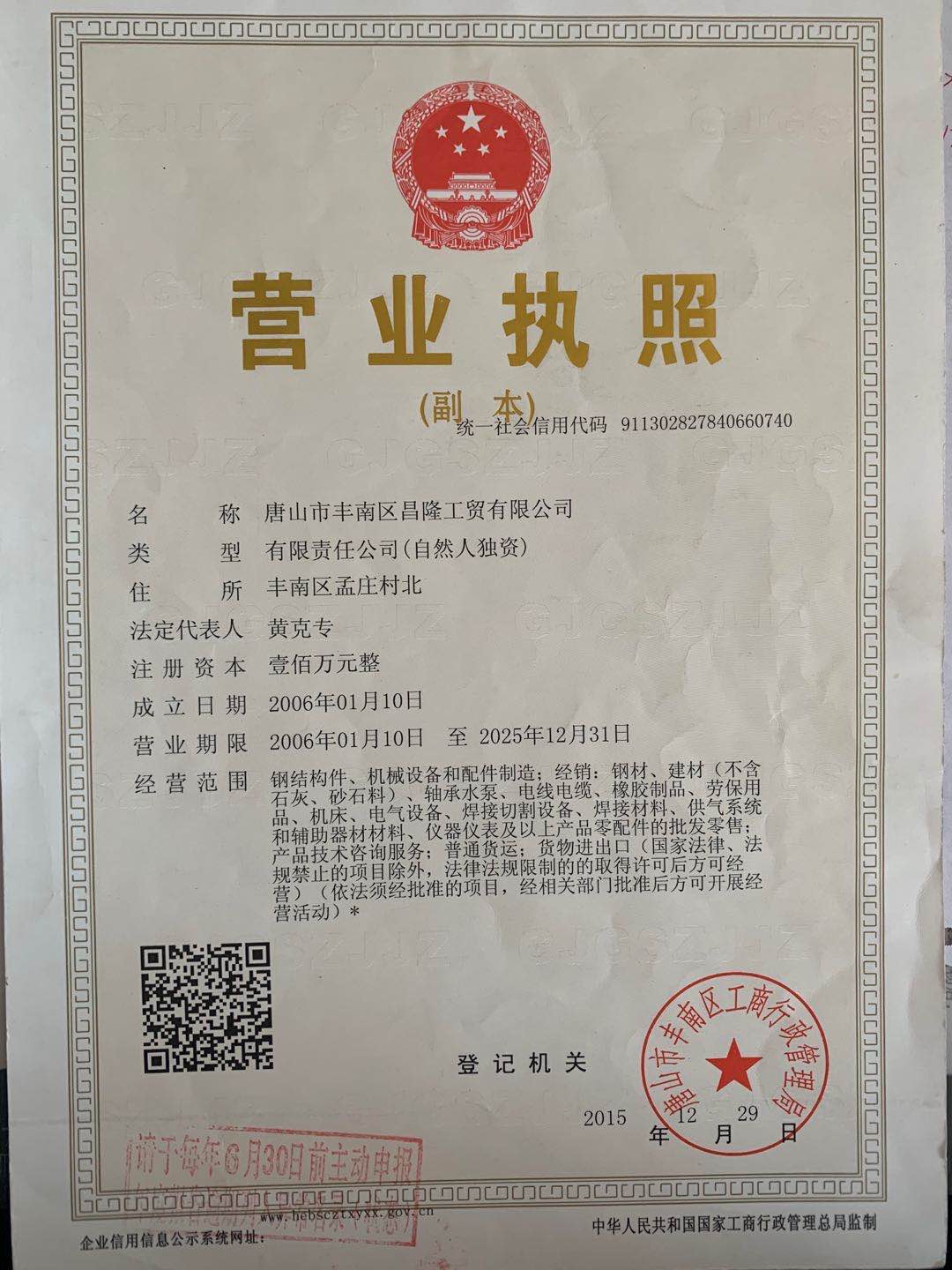 唐山市豐南區(qū)昌隆工貿(mào)有限公司